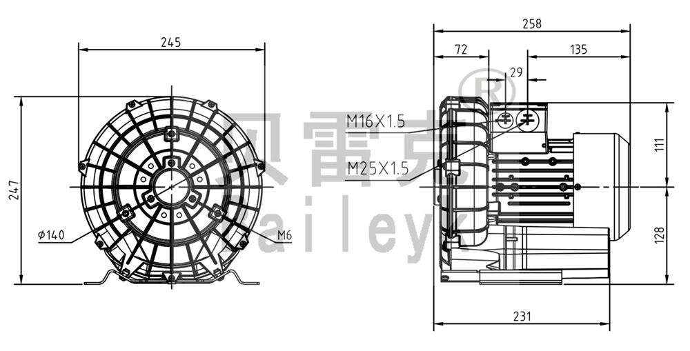 最大風(fēng)量:80m3/h 最大正壓:110mbar 最大負(fù)壓:100mbar 防護(hù)等級(jí):IP55 噪音:53db 重量:9Kg
