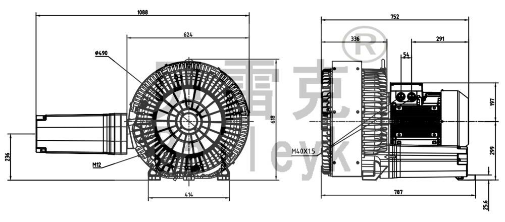 最大風(fēng)量:1110m3/h 最大正壓:500mbar 最大負壓:440mbar 防護等級:IP55 噪音:74db 重量:204Kg