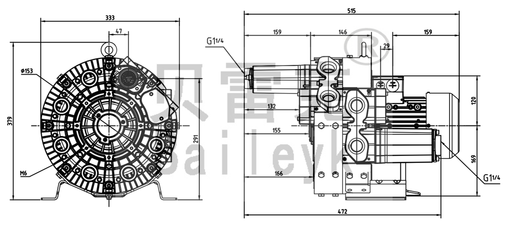 最大風量:65m3/h 最大正壓:480mbar 最大負壓:400mbar 防護等級:IP55 噪音:59db 重量:29Kg